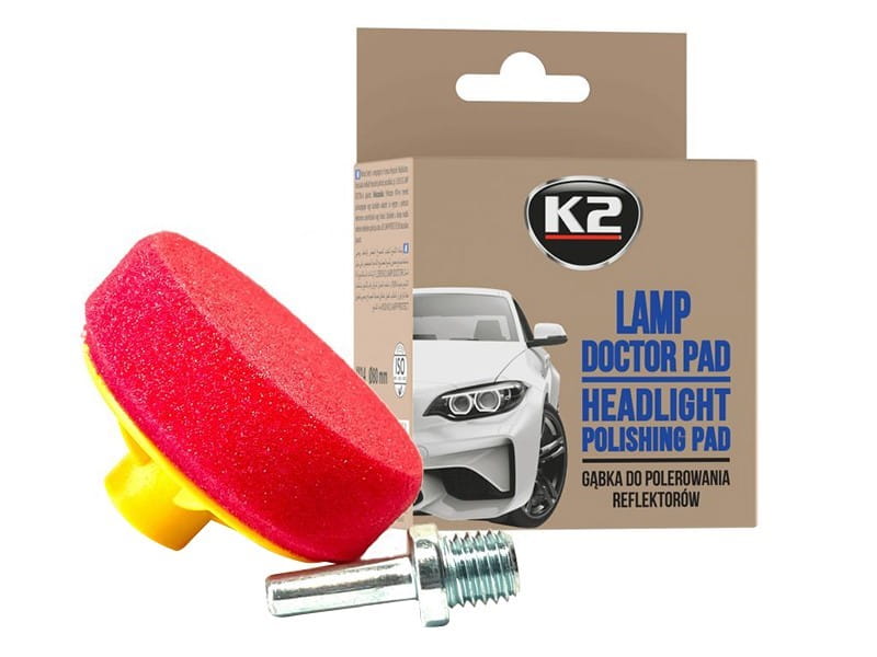 K2 LAMP DOCTOR PAD posiada gwint M14 oraz dołączony do zestawu adapter, dzięki czemu do użycia nie jest wymagana maszyna polerska. Z powodzeniem może być używany jako gąbka do polerowania lamp na wiertarkę lub wkrętarkę. Średnica gąbki 80mm.