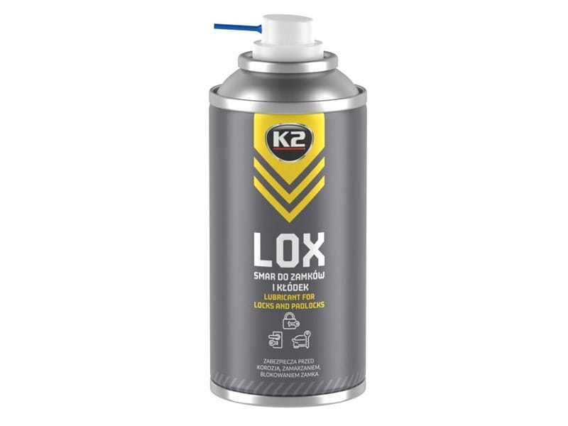 K2 LOX najwyższej jakości smar do konserwacji, zabezpieczania wszelkiego rodzaju zamków, kłódek oraz innych mikromechanizmów. Smaruje i uwalnia zacinające się mechanizmy w drzwiach, bramach, samochodach, skrzynkach, szafkach, rowerach itp.