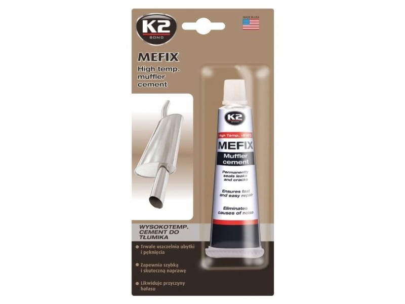 K2 MEFIX to wysokotemperaturowy cement przeznaczony do montażu i napraw zarówno nowych jak i starych układów, rur wydechowych, katalizatorów. Uszczelnia dziury i pęknięcia. Poddany działaniu wysokiej temperatury twardnieje jak stal. Łatwo się rozprowadza. Po utwardzeniu nie kurczy się i nie kruszy, wodoodporny.