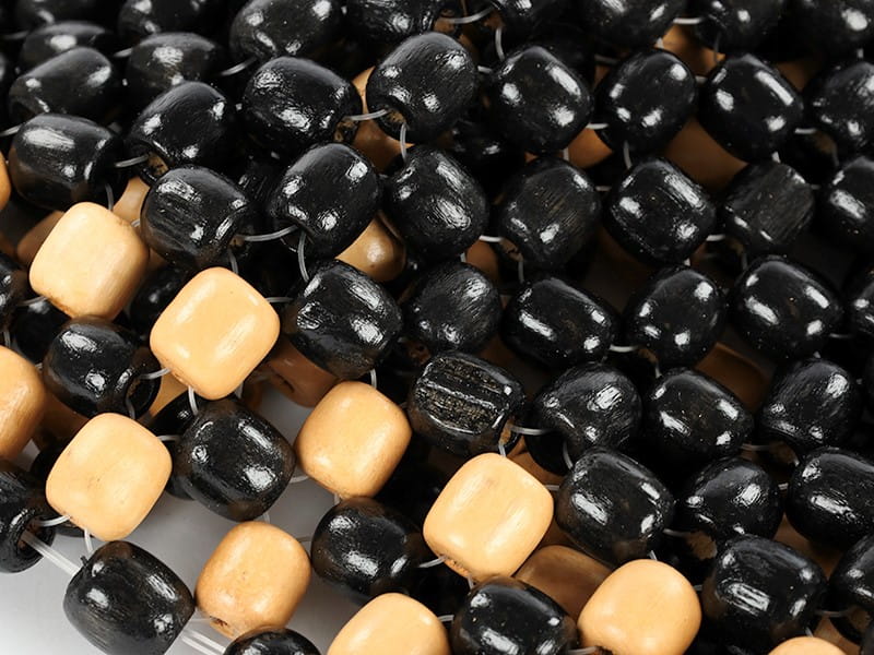 Mata koralikowa, drewniana, czarno - biała