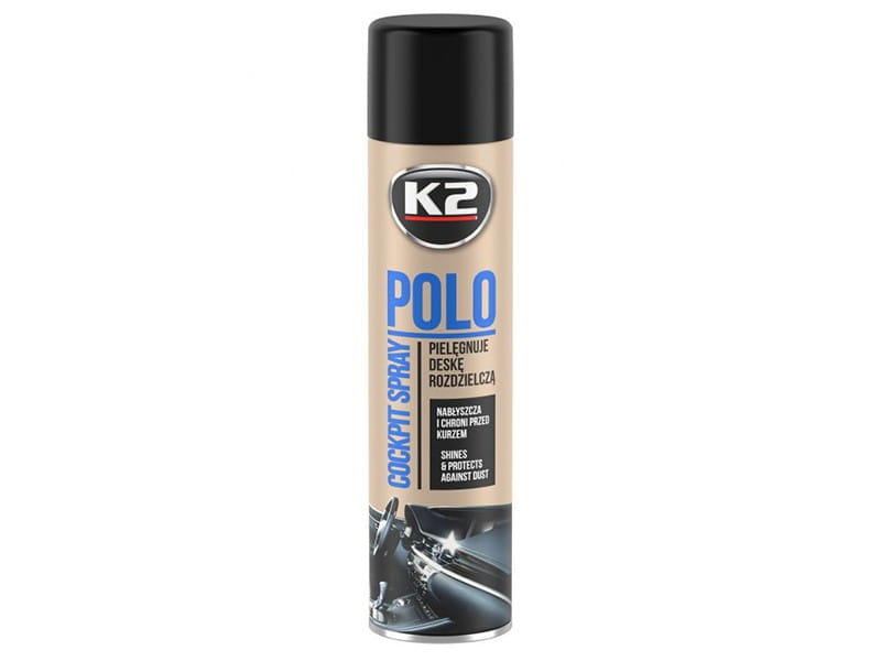 K2 POLO COCKPIT to spray do pielęgnacji i konserwacji deski rozdzielczej. Zawiera specjalne nanocząsteczki, dzięki którym w łatwy i szybki sposób zabezpieczy cały kokpit, przywróci głęboką barwę oraz wyrazistą fakturę czyszczonych elementów.