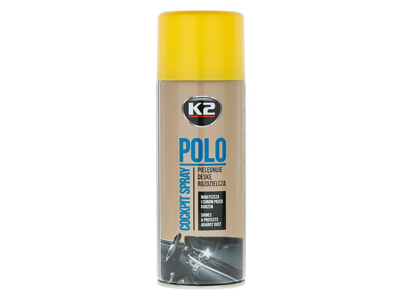 K2 POLO COCKPIT to spray do pielęgnacji i konserwacji deski rozdzielczej. Zawiera specjalne nanocząsteczki, dzięki którym w łatwy i szybki sposób zabezpieczy cały kokpit, przywróci głęboką barwę oraz wyrazistą fakturę czyszczonych elementów.