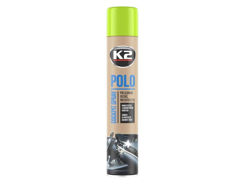 K2 POLO COCKPIT to spray do pielęgnacji i konserwacji deski rozdzielczej. Zawiera specjalne nanocząsteczki, dzięki którym w łatwy i szybki sposób zabezpieczy cały kokpit, przywróci głęboką barwę oraz wyrazistą fakturę czyszczonych elementów.