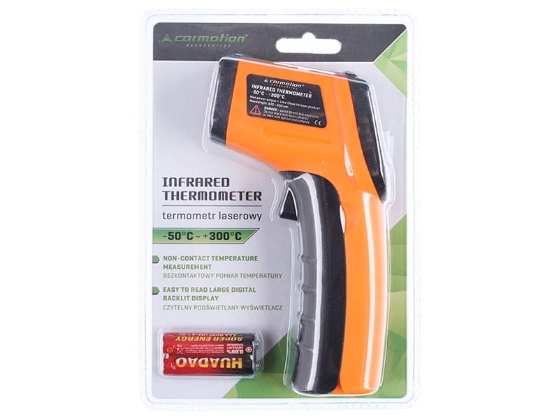 Przeznaczony do użytku domowego, samochodowego i przemysłowego w celu sprawdzenia temperatury otworów wentylacyjnych, klimatyzatorów, silników, tłumików opon , hamulców, płynów, przecieków wokół okien lub drzwi.
