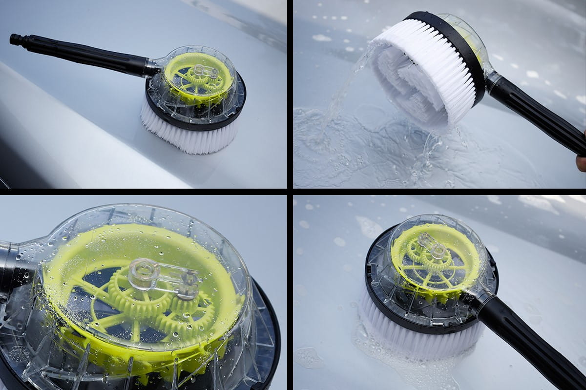 Włosie czyszczącej głowicy ma zróżnicowaną twardość i elastyczność, co pozwala na skuteczne czyszczenie. Pasuje do złączki węża ogrodowego 1/2".