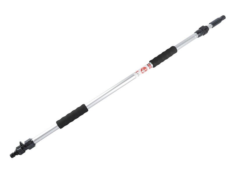 Drążek teleskopowy wykonany jest z wytrzymałego aluminium z miękkimi uchwytami, posiada złączkę wodną z zaworem odcinającym.