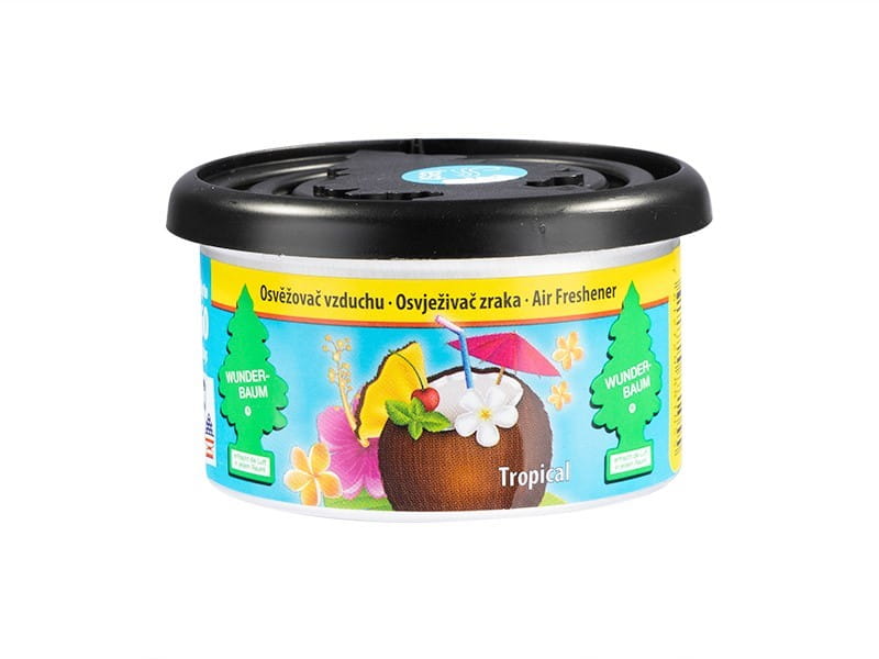 Najpopularniesze z zapachów WUNDER-BAUM® w nowej formie pachnącej puszki, wypełnionej włóknami odzyskanymi z produkcji drzewek zapachowych. WUNDER-BAUM® Fiber Can zostały zaprojektowane tak aby dostarczać długotrwałego i intensywnego zapachu. Kolorowe i estetyczne, małe puszki świetnie się sprawdzą w samochodzie oraz w domu. Opakowanie z testerem zapachu. Zapach - Tropical.